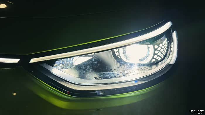 醒目的Logo显示了它的大灯型号,同时和老款的灯相比,我们会发现它貌似没有单独的前雾灯,但实际上和绝大部分高配ID车型一样,它配置了全天候灯,是一种包含前雾灯功能的,可以全天候工作的"新型雾灯",比老式的前雾灯更强大,只是全天候灯是集成在前大灯总成里,传统前雾灯一般安装在的前保险杠下方两侧,照明效果和智能程度全天候灯更好。
