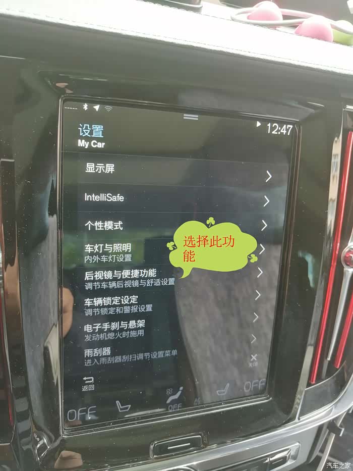 这里推荐一个亮眼的功能:就是驾驶位也可以调节副驾驶的座椅,在设置中选中“调节副驾驶座椅”图标,接下来就按调整自己座椅的方式即可调整副驾驶座椅。这是沃尔沃人性化设计的体现,因为很多时候副驾驶乘坐人员不熟悉座椅的调整方式,而如果没有此功能的话,必须靠边停车,驾驶员下车来到副驾驶一侧帮助调整,费时还不安全。而沃尔沃完美的解决了上述问题。这里要给沃尔沃设计师一个大大的赞。