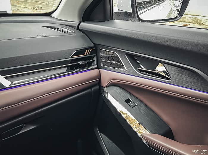 还有可调节氛围灯,侧门的音响还做成了思皓的标志,缝线做的也不错!可以不夸张的说,内饰做的有20w车的感觉了。