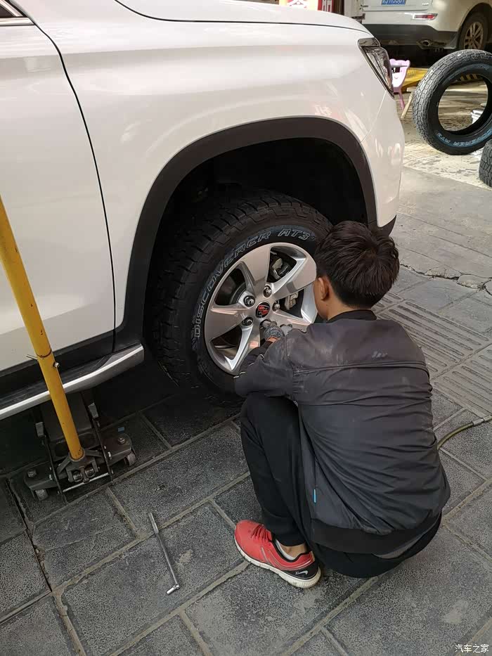车正面效果,瞧这大花纹,虽然不及MT胎,但比HT胎也要大了