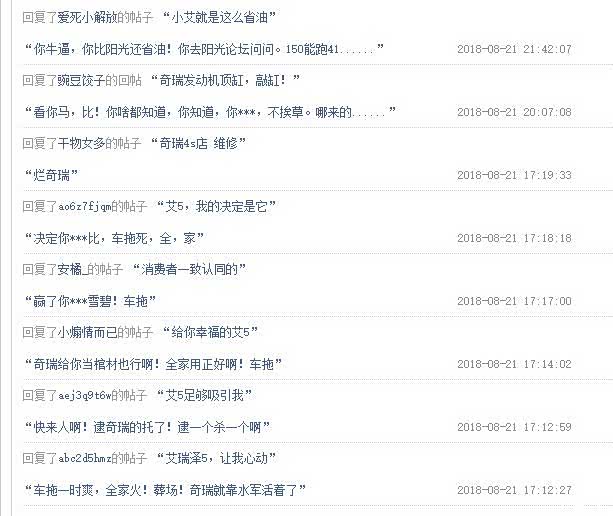 车黑。可能是艾5论坛一个特色。车黑猖獗,几乎每篇都能看到身影。旅游贴泛滥,超过三分之二的精华帖竟然都是旅游贴。首先聊聊车黑,国内大点的自主就那么几家:吉利销量最牛,比亚迪新能源最牛,长城的SUV最牛,长安军工出身,奇瑞三大件相对起步早。不去对比合资,却来抹黑手足蚕食份额。有些人是低级黑,只会一味的在艾5论坛各个贴子留言煽风点火。有些高级黑,在奇瑞各个论坛开贴引爆话题争论。还遇见过艾5认证车友,张口闭口就是爆粗口。也有车友开贴题目吸引人说奇瑞质量差,活该销量低,结果内容竟然是吐槽刹车片生锈.......
