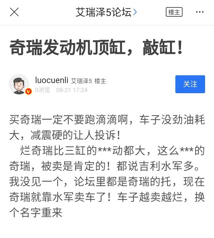 这位便是大神级别的存在,喜欢各个奇瑞论坛发帖留言,标题看着没问题,内容却笑里藏刀。放在战国时期,不比苏秦差,绝对能建功立业名留青史。