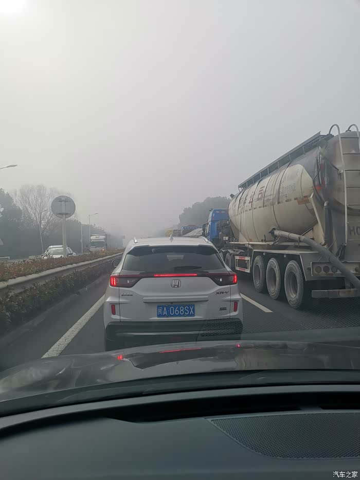大雾天气,堵车中