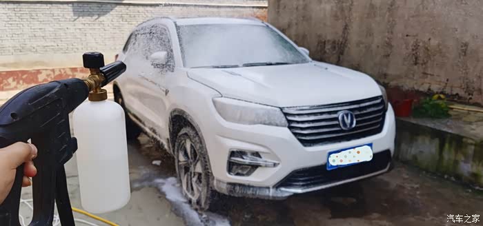 给车子喷上雪白雪白的泡沫