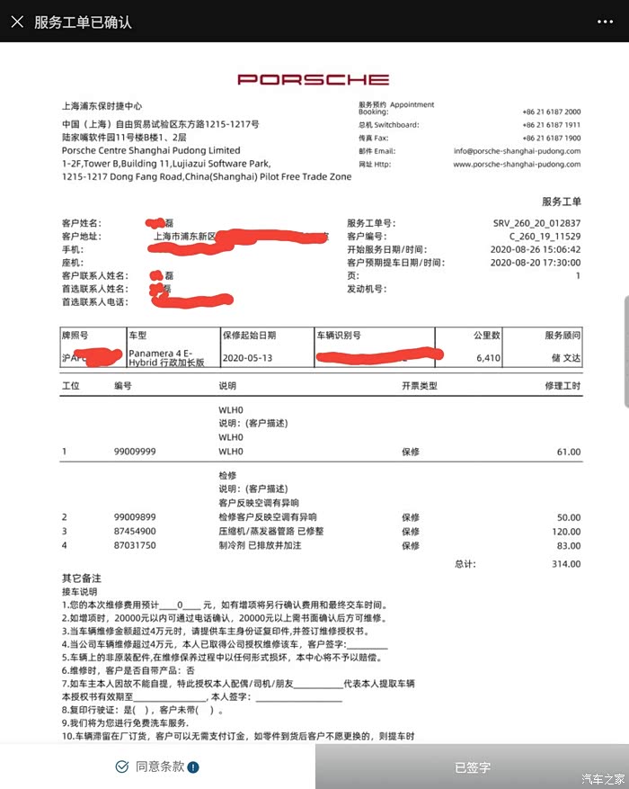 前几天因为老婆想把macan换成718所以去了4s店订了车,顺便看下4E的空调异响问题,结果维修方案已经出来了,订空调的防震垫需要几天时间,到货后我就去了4s店,和售后聊了会,因为德国那里刚出修理空调异响的方案,我也是在他手里第一个维修的,4E普遍存在空调异响的问题连店里的4E试驾车都有,少量汽油的帕美也有相同的问题。