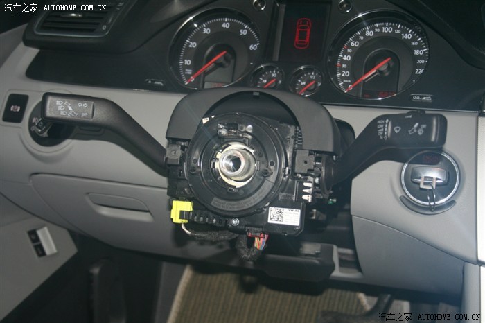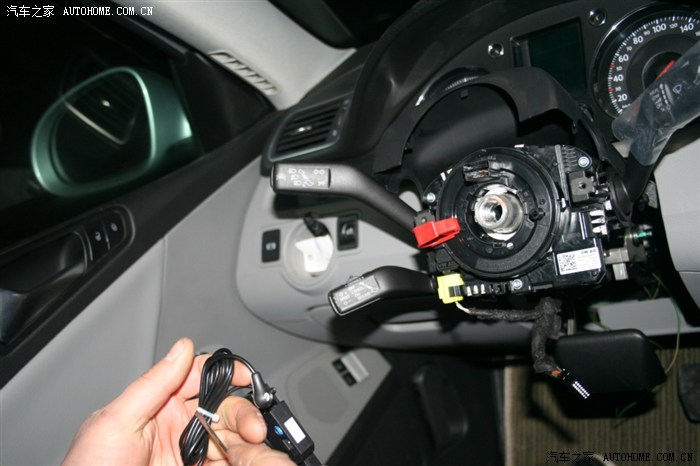 第四步,换上新的带有定速巡航的转换开关总成(此图片转换开关总成是CC的总成,后来由于无法匹配,换成了11款迈腾带巡航的开关总成,新总成没拍照)。