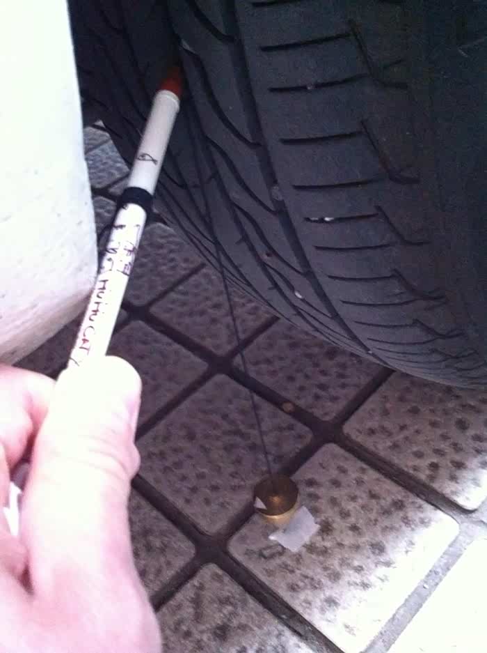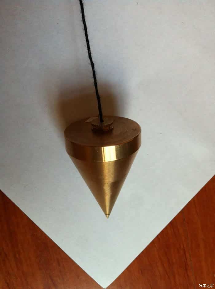 我把测量点选在第二道轮胎缝边,笔杆头带着线,定位很方便准确。铜垂如晃动可用手指扶一下,待静止后划记号。