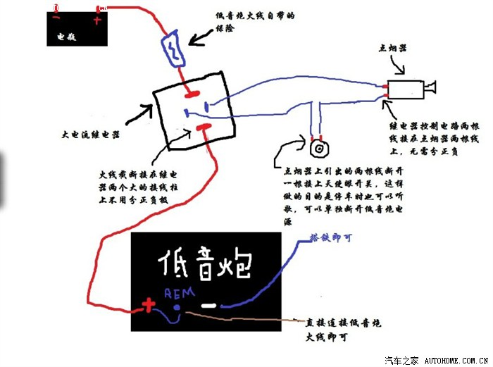 低音炮的另类接法,坚决杜绝漏电跑电,保证安全。(附电路图)
