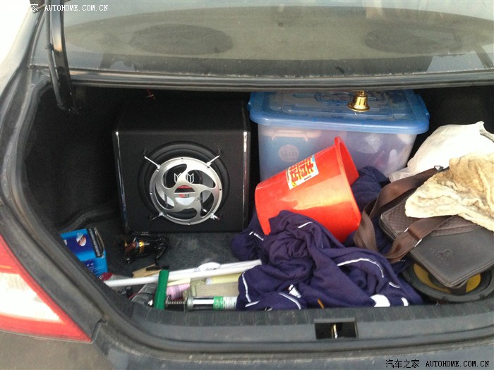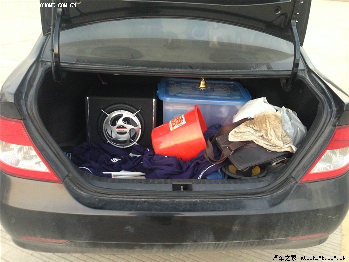 新买来的10寸低音炮,能看出来有多大吗,音质好够震撼。那个罩子是过去8寸低音炮上的,怕碰到喇叭就扣在新的上面来了。(无视我那杂乱的后备箱吧,平时喜欢钓鱼)