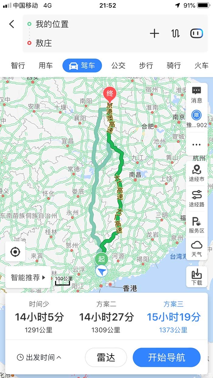 明天从广州回驻马店了,来的时候河南段的京港澳高速比较好走,过了省界就不行了,又转的武深高速,更别提了,几百公里没有服务区……这次回家想了解下全程路是大广好走还是京港澳好走,走大广距离远一些,经常跑高速的伙伴给了解一下