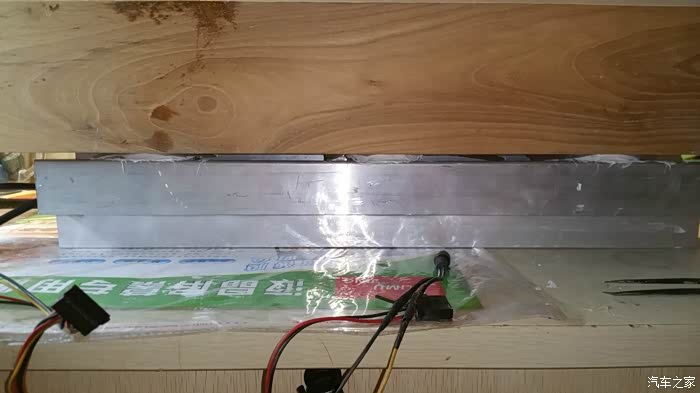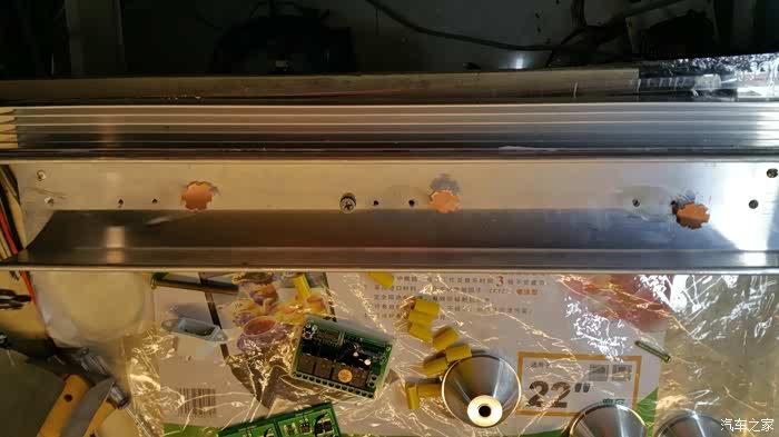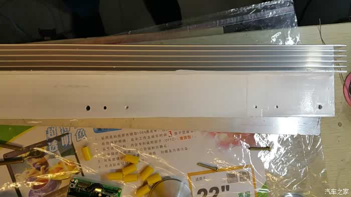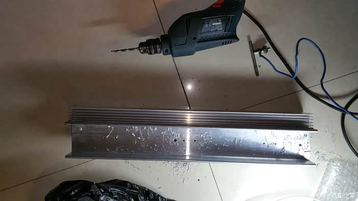 先把两个散热片上到一起,量好尺寸,开始打孔。