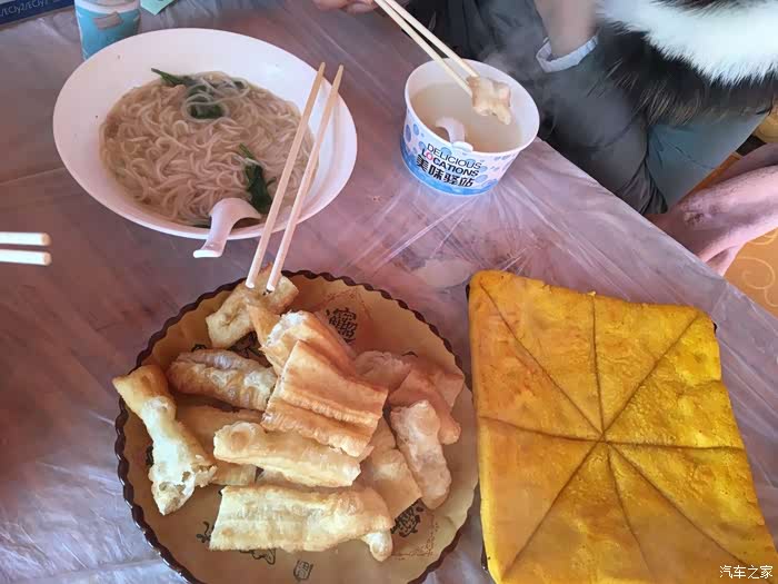 这个鸡汤米线很好吃,金黄色的是摩梭粑粑,豆浆加油条美味连着两个早餐吃,我自己每次可以吃两根油条加一个摩梭粑粑