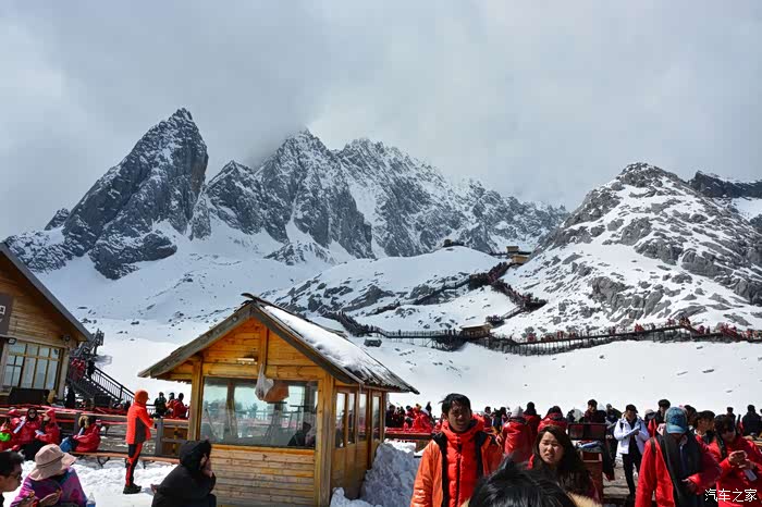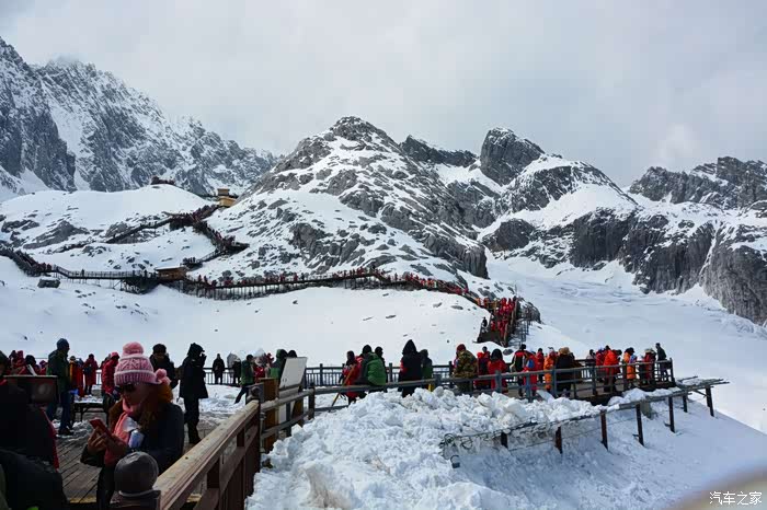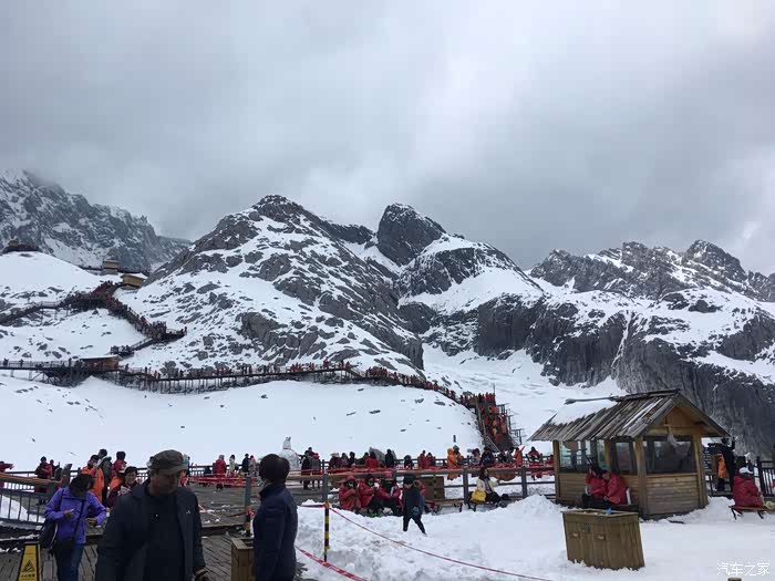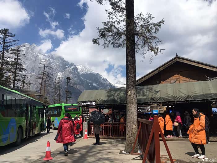 本来只是计划开车往玉龙雪山脚下逛逛就行了,然后去玉水寨,毕竟孩子小不怎么敢带上玉龙雪山海拔4500米呢!我之前去过梅里雪山对高原没有问题,但是老婆跟孩子心里没底。开着车走到了玉龙雪山景区大门,要收费130元/大人,买了票想想进去看看吧! 过景区大门后七公里左右就到停车区了,去玉龙雪山索道、蓝月谷这些景区都只能买票坐观光车。经过跟老婆商量还是决定上玉龙雪山,实在不妥就赶紧下山。最终是孩子一点事都没有,孩子比我们想象中的能折腾。买了一瓶氧气罐备用60元,因为没计划上山就没穿很厚的衣服,租了三件衣服50元/件,押金300元/件。其实雪山上只要不起风就不会冷的。