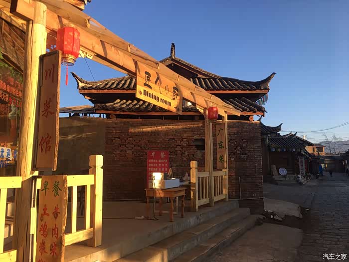 晚饭在束河里面的杂菜烩吃,门口放着黄渤等明星在这里吃饭的照片。