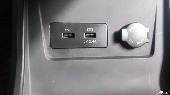这个车的充电接口非常丰富,前面有两个USB接口和一个12V电源接口中央扶手处还有无线充电