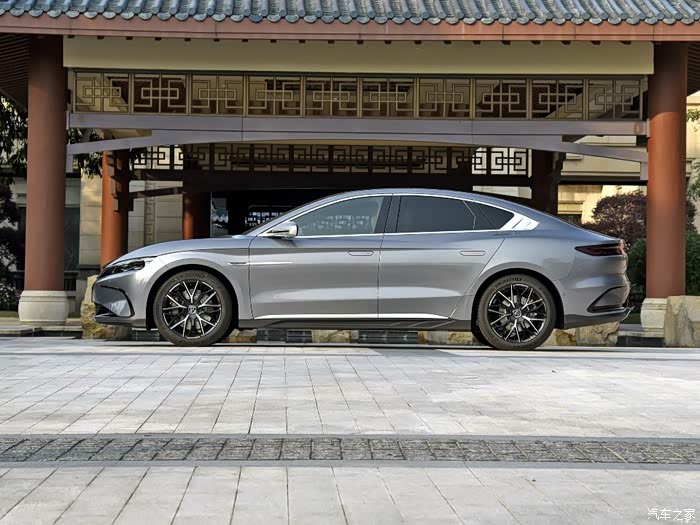 再来说外观,埃安S PLUS相对来说更显年轻运动,前脸依旧采用的是全封闭式设计,这也是目前电车主流的设计语言了,主要就是为了减少风阻,而且前大灯还采用熏黑式设计,车身侧面采用黑色的悬浮式车顶,看上去还是非常时尚的,整个车型采用“星空战舰”的设计语言也具有一定的科技感和未来感。而汉EV采用的是“龙颜”的家族式设计风格,其封闭式的格栅之间加入了一块贯穿的银色饰板,并镌刻了“汉”的品牌标志。与此同时贯穿式下进气口两侧还配有獠牙的装饰件,在锐利的矩阵式LED大灯组和黑色电镀前唇的配黑下颇有高级感和运动感。但是要说两款车哪个更好看更漂亮,我还得觉得埃安S PLUS更有辨识度。