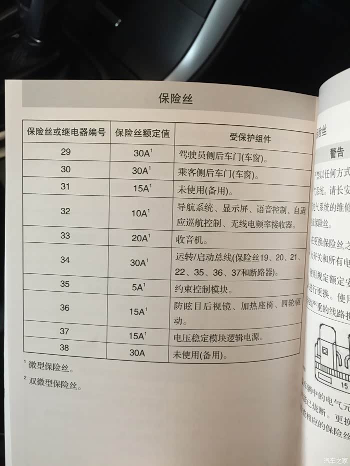 拉开抽屉就可以看见保险盒了,其实有很多个选择,但是我的取电线只能选两脚的保险丝,还有三角的,保险盒上半部分有个服务卡盖住,又不想去掉,所以我选择了下半部分的36号,查了使用手册,是座椅加热,自动防眩和四驱的,这个是启动通电熄火断电的。