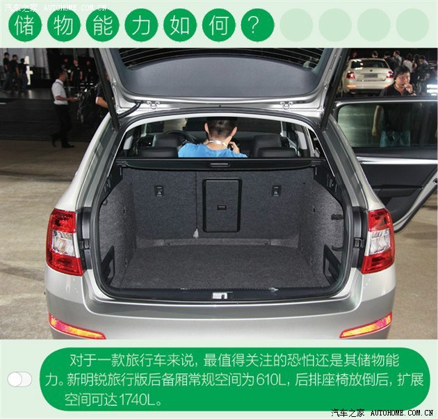 全新明锐旅行版内饰做工都很精细,不过设计有些保守。轴距增大后,乘坐空间更加舒适,储物空间相比三厢版明锐也更加灵活和实用。