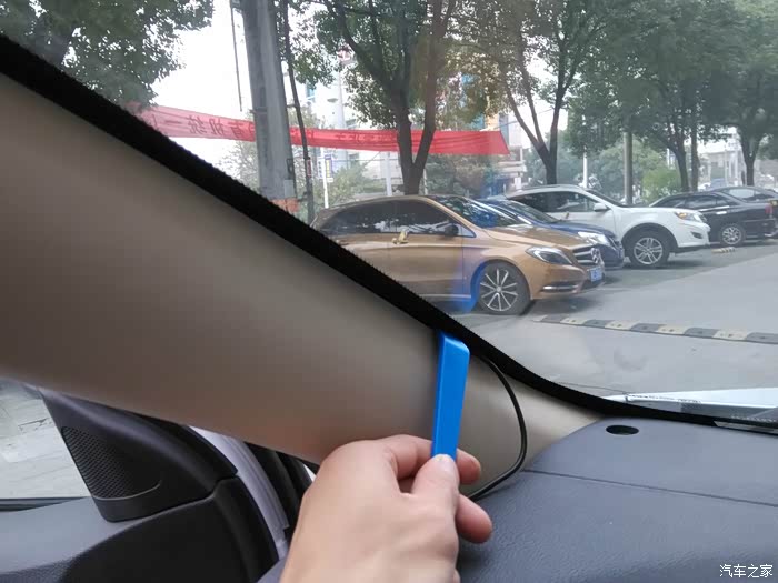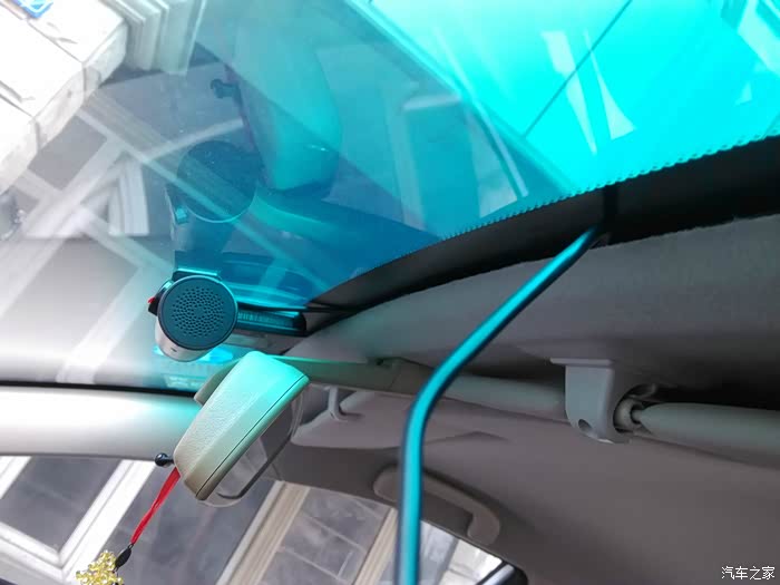先将记录仪固定好再整理走线,切记镜头要在玻璃的正中间哦。