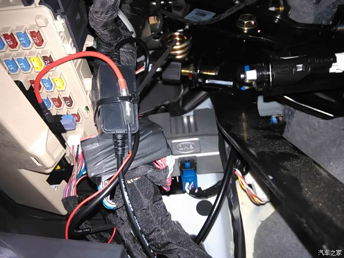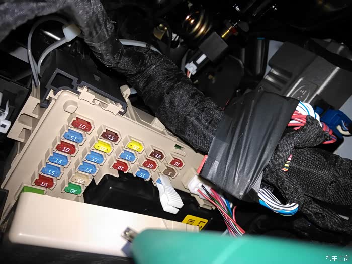 降压线全部卡好后用扎带把多余的线都扎。这里有个遗憾就是保险盒的盖子不能盖起来了,但也没什么影响,就是不完美而已。