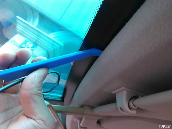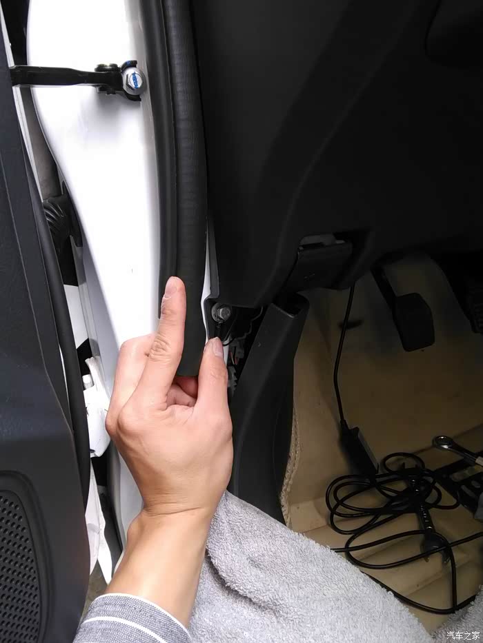 将踏板边上的塑料板拉开,然后线就到仪表盘下方了。