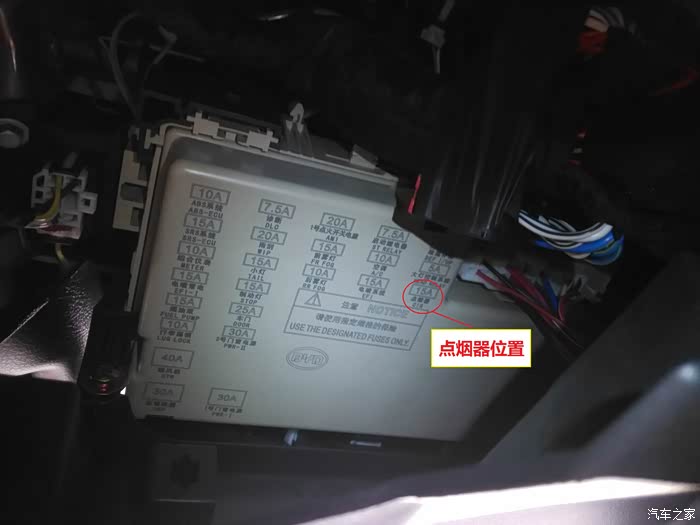 看到保险盒的外壳后,可以看到上面标注了点烟器保险丝的位置。