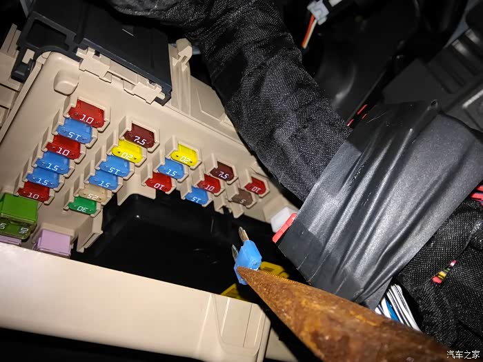 小三的保险盒设计的不够人性化啊,而且保险丝夹子并不好用,我弄的手都擦破皮了也没能把保险丝抽出来......好吧,这就是没有经验的后果。