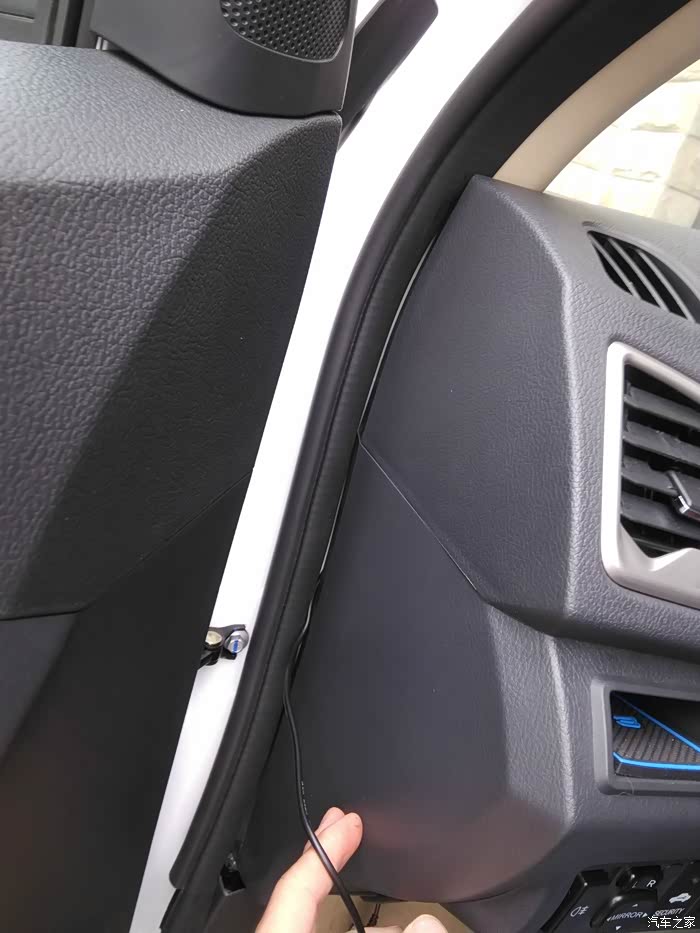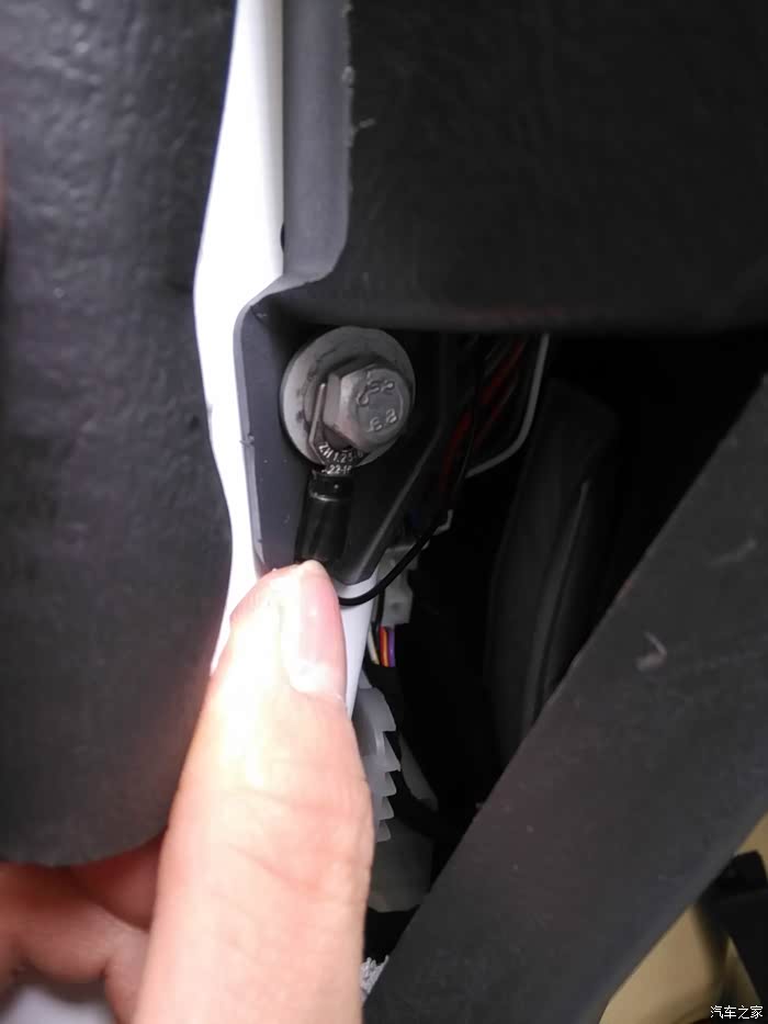 取电器分出来的黑线作为搭铁用,我接到了门边的一颗螺丝上。