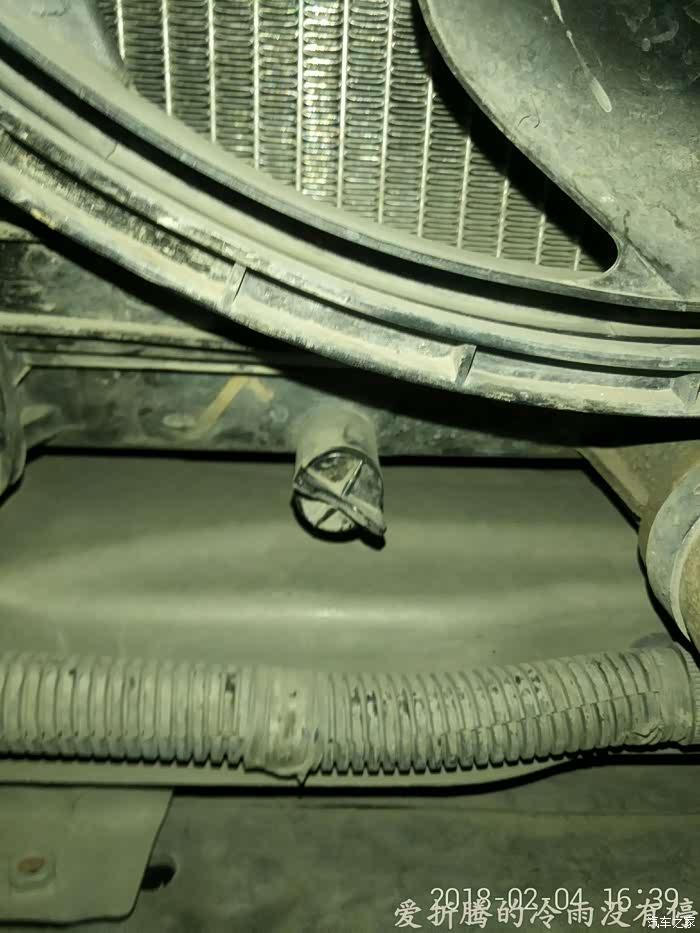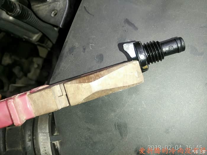 原车防冻液排得差不多以后,把那一颗螺丝轻轻拧紧就行,接了自来水倒进水箱