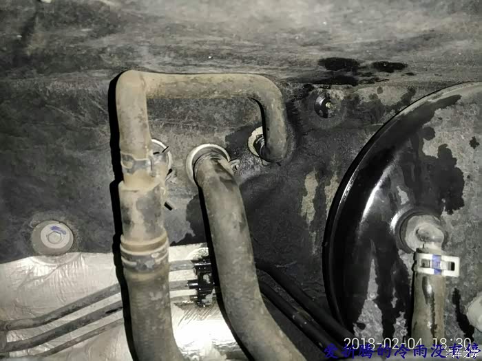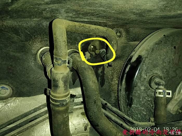 如图,发动机舱防火墙上有一根细一点的管子,靠近刹车真空泵的