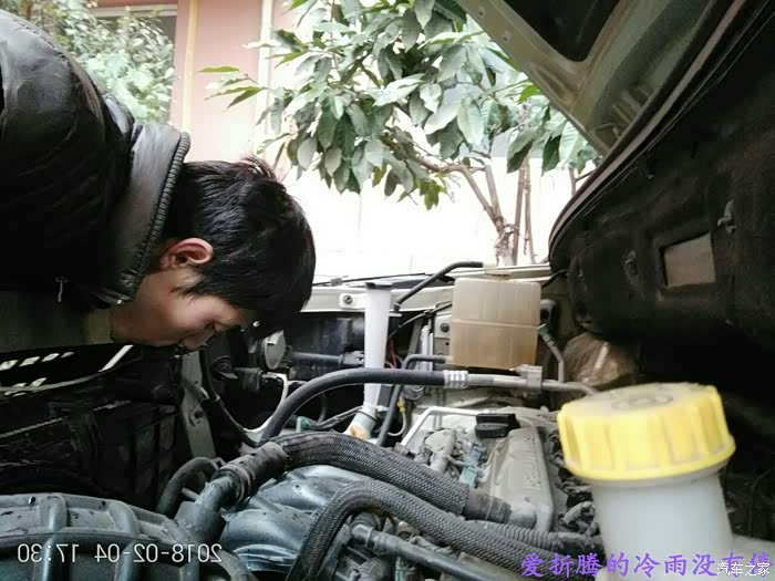 副水箱的防冻液就这样用嘴吹出来(一个人作业,拍照不容易)