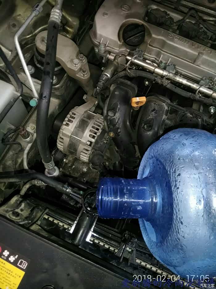 最后,把防冻液从副水箱加入,加到最大刻度!