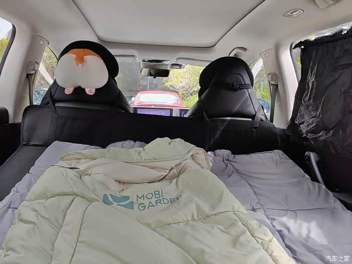 床垫我不喜欢用充气型的,我更喜欢买实体的床垫,因为我觉得实体床垫用起来更加的柔软,而且睡起来更加的舒服。被子的话我不喜欢用普通被子,我喜欢用睡袋,因为我个人觉得用睡袋的话可以更方便的进行收纳,一个人睡也有包裹的安全感,从而有着更好的使用体验。如果大家要准备被子的话,我可以觉得可以使用抱枕收纳型的,平时折起来是抱枕,但是散开来之后是被子。方便收纳的东西在车内使用会更加合适一些。
