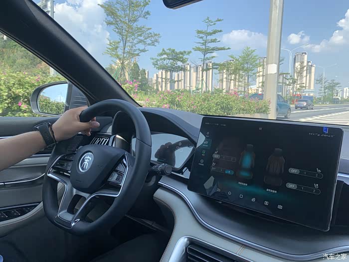 还好出门有带驾驶证,不然就试驾不了了,我试乘了一次,再试驾了一次,因为我觉得买车副驾驶的乘车感受,舒适度也是很重要的。坐上车首先座椅很舒服,天气有点热,销售还给我开了座椅通风功能,还别说,真的是背部和座椅都凉飕飕的,挺舒服。试坐了一条比较平的市区路,感受了加速的感觉,很平顺,副驾驶的感觉还是不错。试驾的时候,坐上去,感觉很静,没有油车那种发动机很吵的声音,启动平顺,提速很快,还有道路辅助的功能,压线或者变道,方向盘都有轻轻的抖动一下,不会很夸张,就是有提醒的感觉。整体感受都可以。下次带家人来看看,他们都觉得好,就打算定这台了。