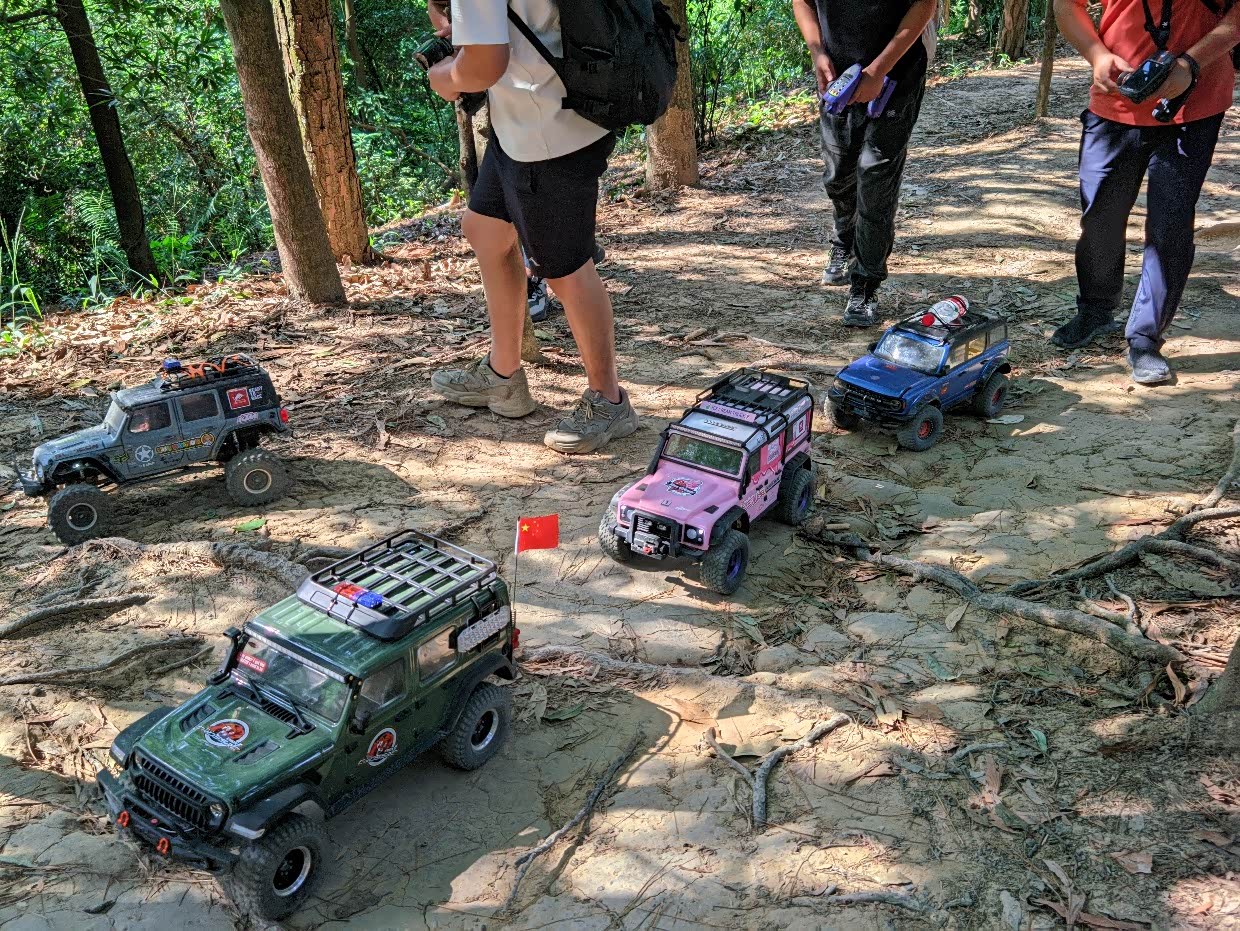 4架越野车在丛林中上行,偶尔翻个车,也是很正常的。