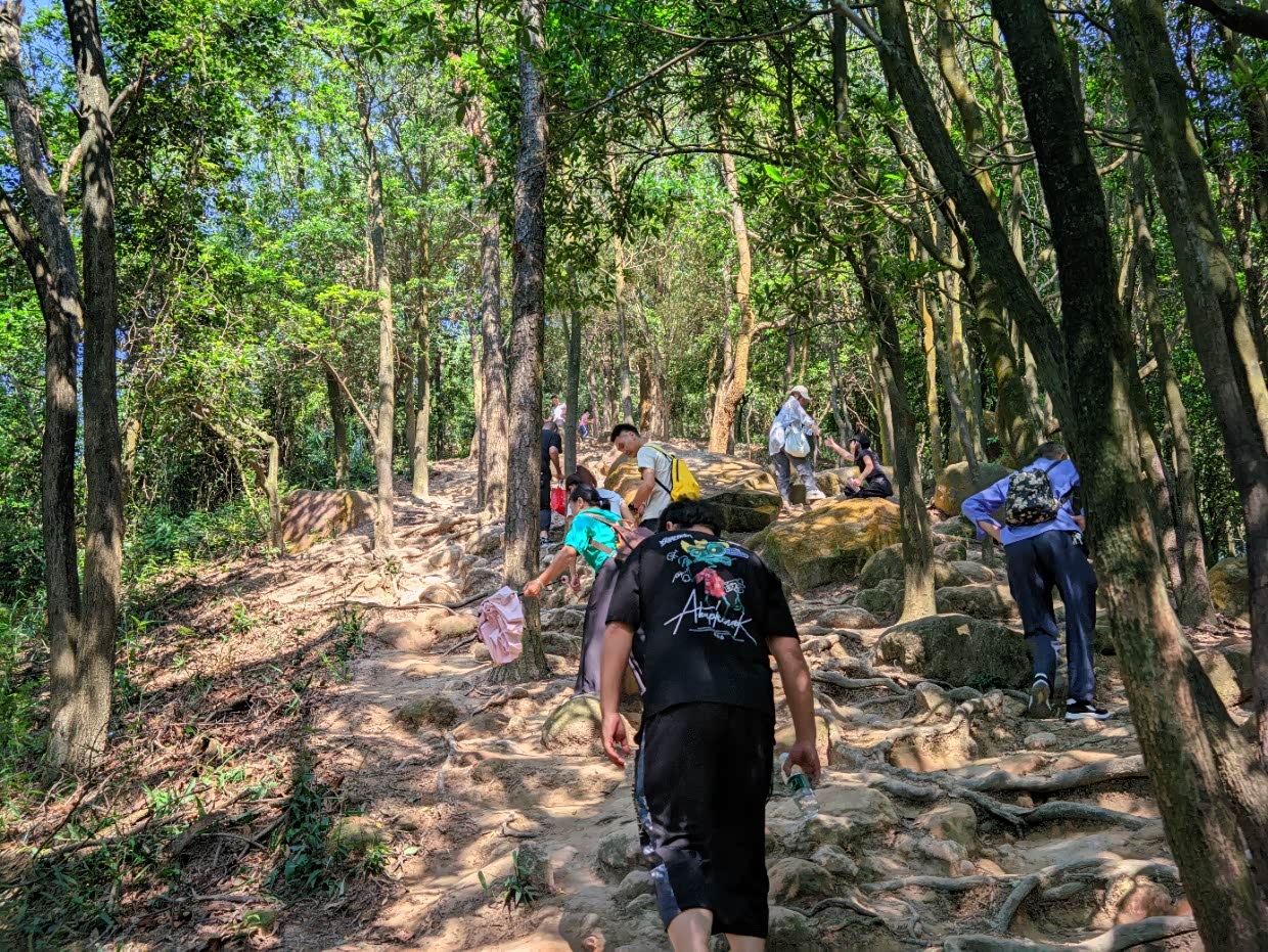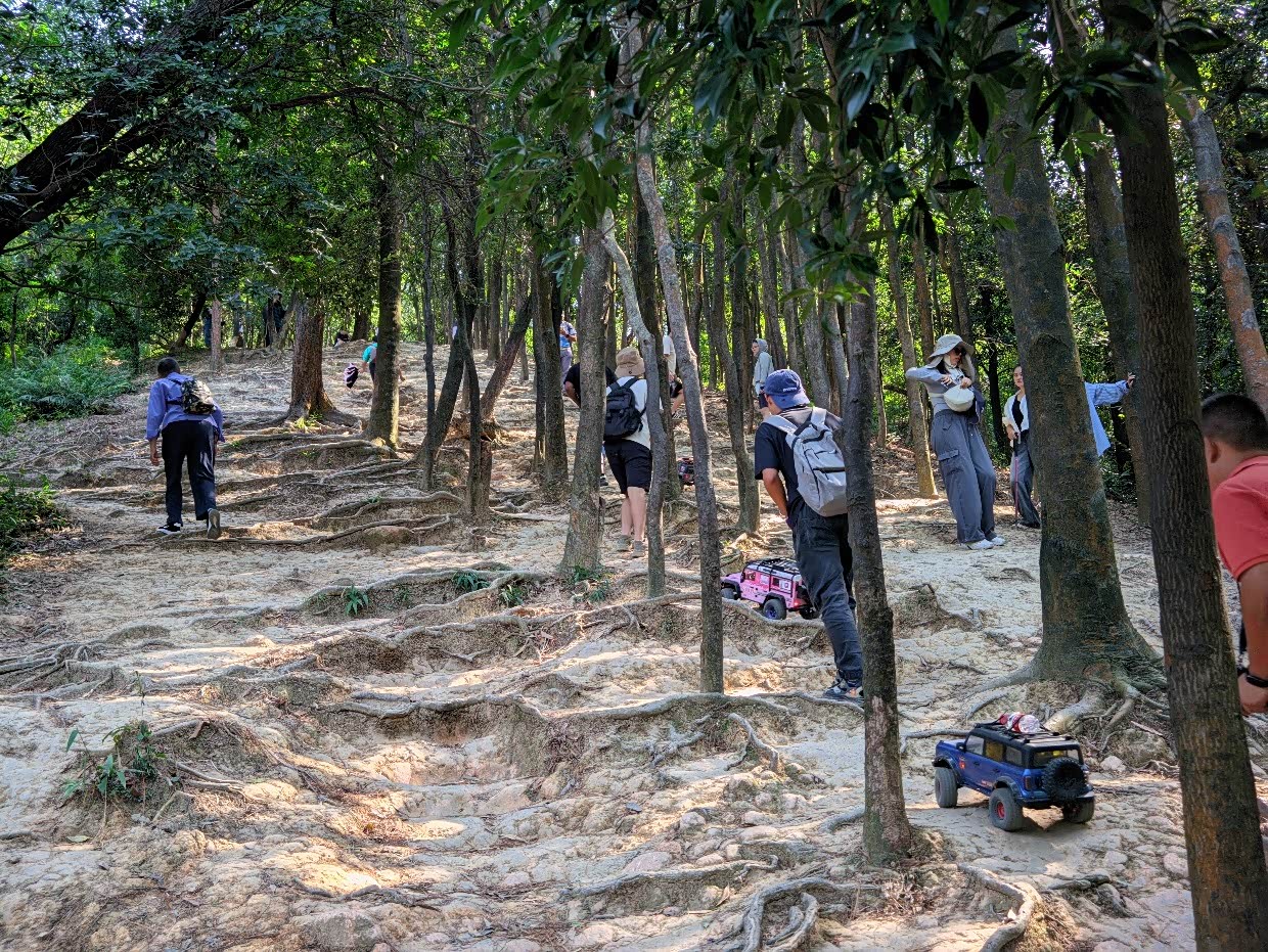有些路段比较陡或者比较滑,大概率要抓住身边树木,有洁癖的带上手套。不要看到有向下的路就以为到顶,最后有一段下去再重新上的路程。