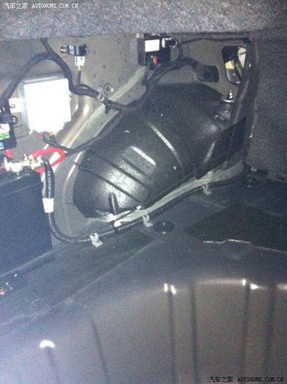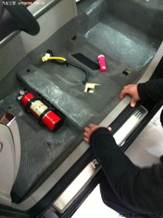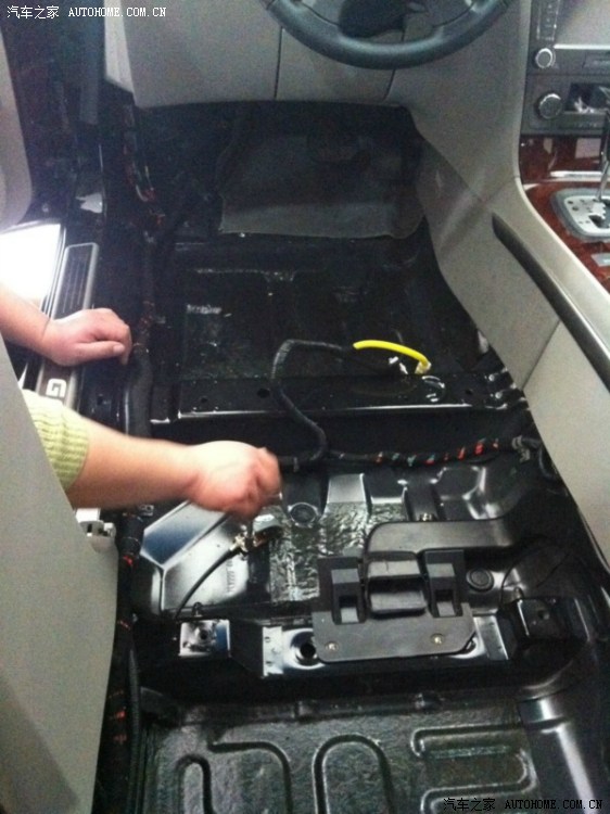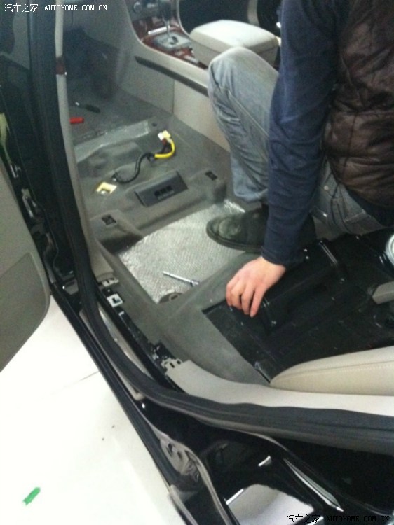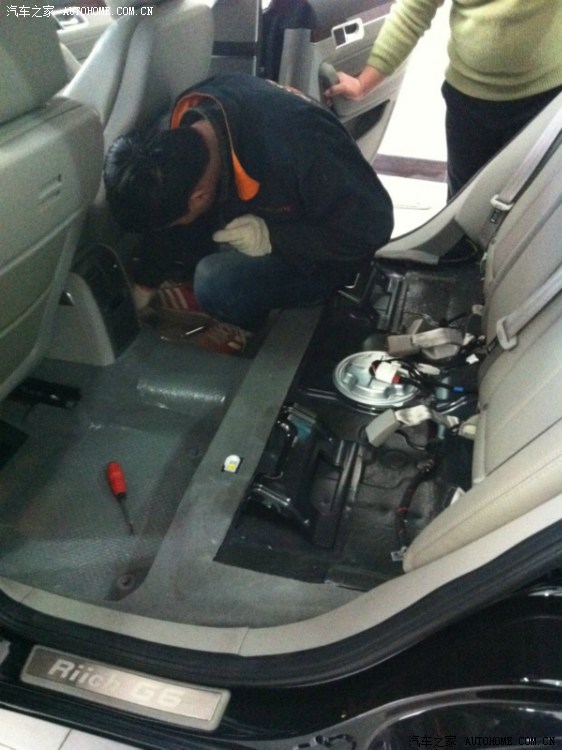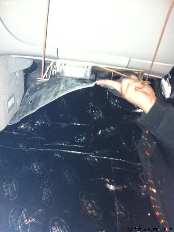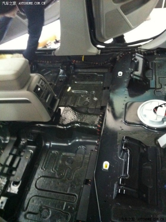 看到前面后座已经拆掉了。在屁股下面奇瑞已经做了相关的隔音处理。黑色的不知道是什么材质。