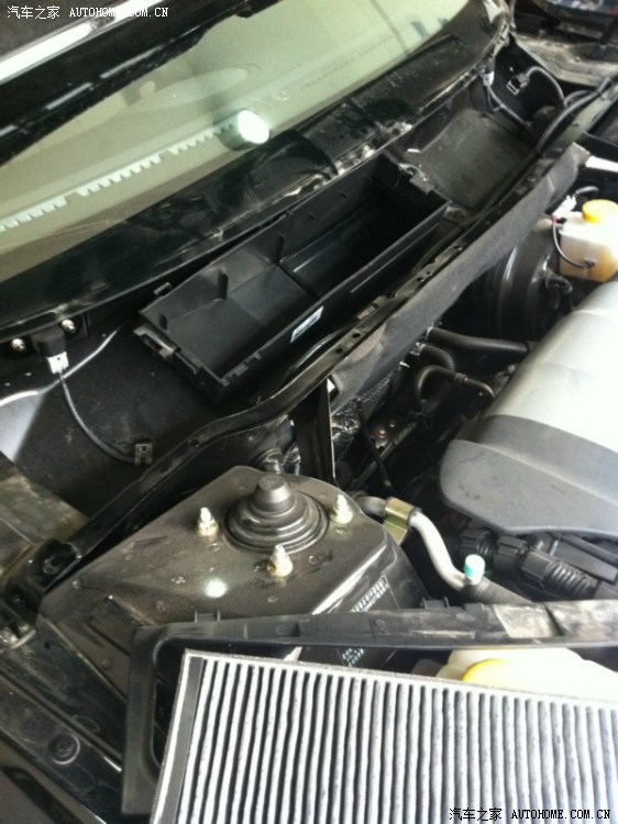 空调滤芯也取出来了。看到空调滤芯后面那个塑料的东西了吗,后来是他是多么的难上回去。可以看出奇瑞的设计是多么不合理。