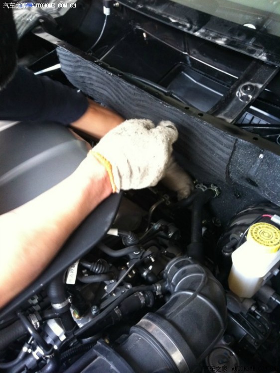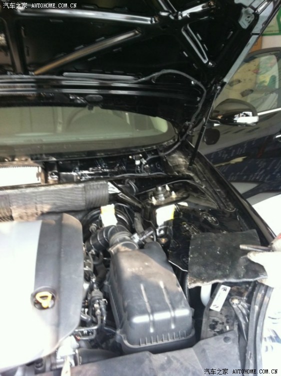 打开发动机仓,就要开始施工了,这个是防火墙部分是G6本来的样子。