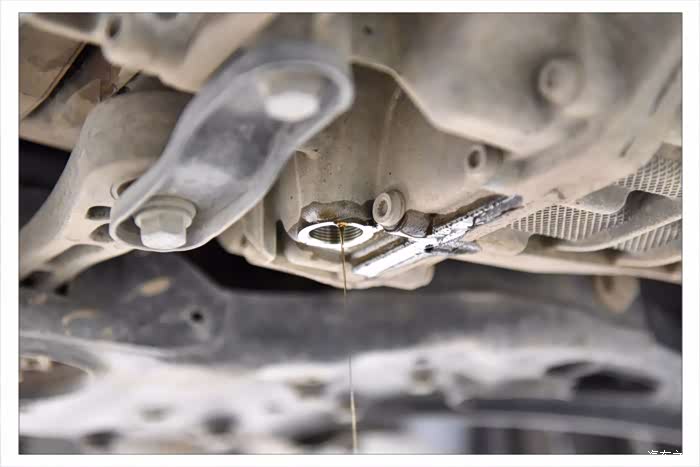 这时候打开后流出用快4年6万多公里的变速箱油,仔细看看流出来的油还满干净的不错不错。