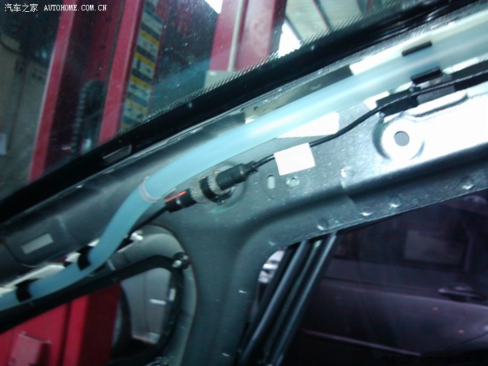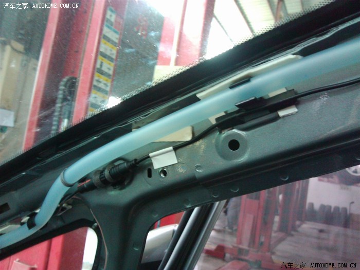 言归正题,重新拆开检查,路试,后来并不是论坛反映的卡扣引起,是A柱小块玻璃下边结合处有缝隙,原因厂家下半部分省点密封胶没涂上导致结合处存在间隙致异响。后来拧开小窗上的螺丝加塞密封胶上紧螺丝载路试,总共折腾几个钟基本解决问题。