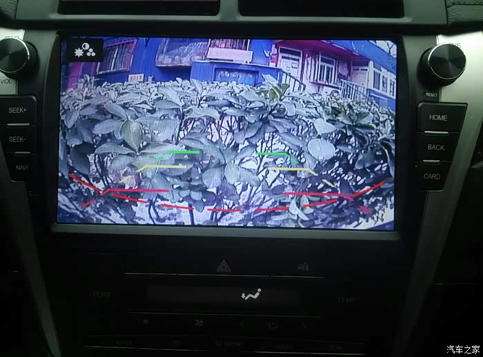 清晨时分倒车影像。晚上的清晰度足够,忘记拍照了,有空再补吧