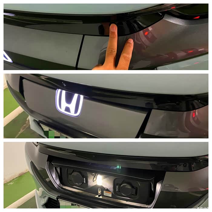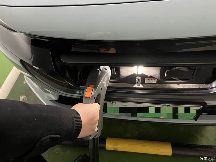 e:NP1极湃1的充电口也比较有意思,在车头H标的后面。按下前盖,啪嗒一下,充电口就露出来了。