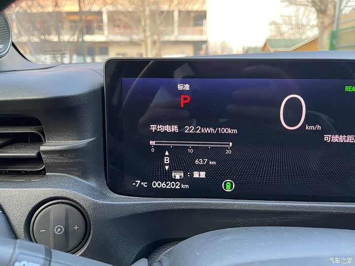 今天天真挺冷的,看天气预报说是大风降温蓝色预警,外面是零下7度。不过我们车内开着31度的暖风,感觉还是挺舒服的。而且我们都开了座椅加热,所以百公里耗电有所上升,实时显示也在22.7kWh/100KM。