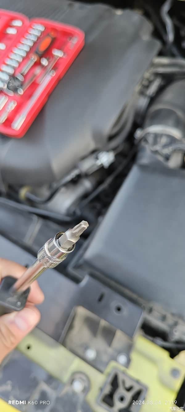 用到的工具是这种批头,没有的可以用平口的螺丝刀,都是可以拆卸的,拆的时候建议大家不要将螺丝从空滤盖上拔出,等装的时候容易掉。