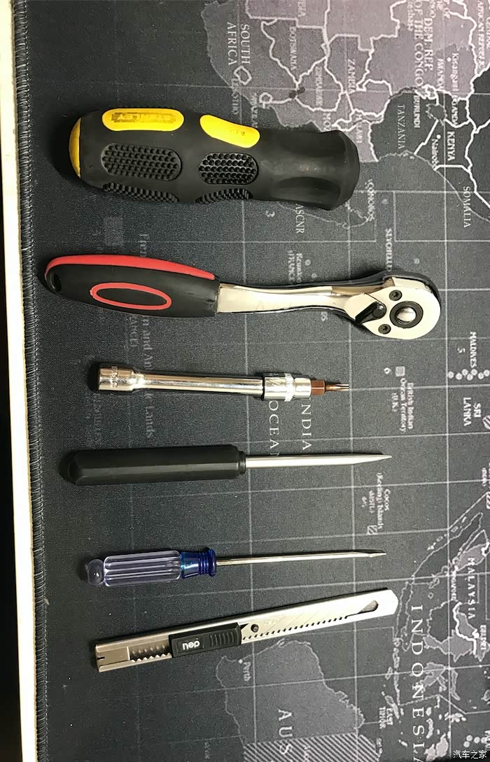 必备工具:T15,3/8快速扳手、短接杆、30度美工刀、一字起两把