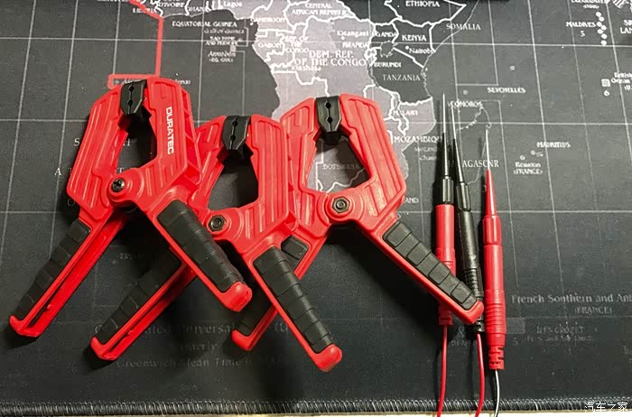上夹子和探针,这么密密麻麻的电路板,没有这些可不行