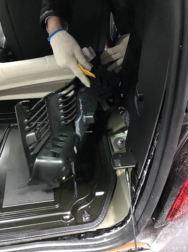 把前面座椅往前倾,等会需要用来卡住发动机舱隔音棉