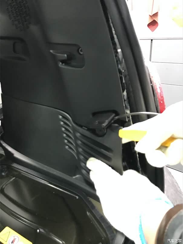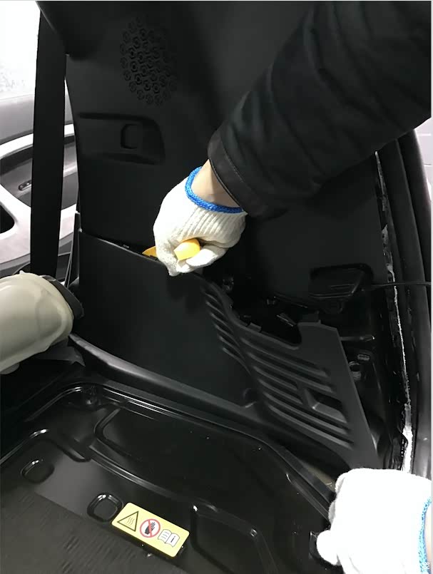 用力提拉黑色密封胶,使车内内饰板边缘裸露