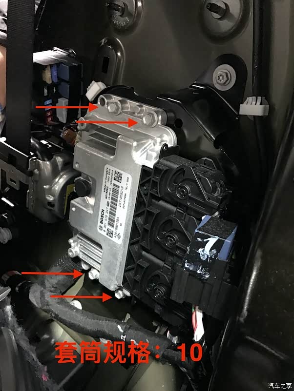 使用工具:10的套筒拆卸红色箭头的螺丝